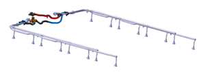 应用于汽车发动机散热系统,连接发动机、散热器、暖风机等主要零部件,通过传输冷却液将发动机工作产生的热量传递至散热器降温、传递至暖风机为驾驶舱供热,并将散热后的冷却液传送回发动机进行下一个热量循环。